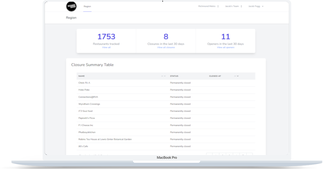 Get instant updates on restaurant closures in your chosen region. Our robust system captures and delivers this crucial data in real-time, ensuring you're always first to know.